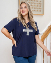 A flattering, classic cut tee with feature sequin cross design! A great tee for casual days teamed with your favourite shorts or denim. The sequin detail allows you to easily up-style this tee for an occasion by adding a pair of heels and blazer.