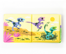 Cheeky Compsognathus’ paint on Stegosaurus’ spikes, as playful Velociraptors frolic in the mud in this super fun, interactive bath book. Kids will delight in transforming these messy dinosaurs, with cold water ‘cleaning’ the mud off, and warm water making it magically reappear again! The compact size of this fun bath book is perfect for little one's tub time and makes a sweet, unique gift.