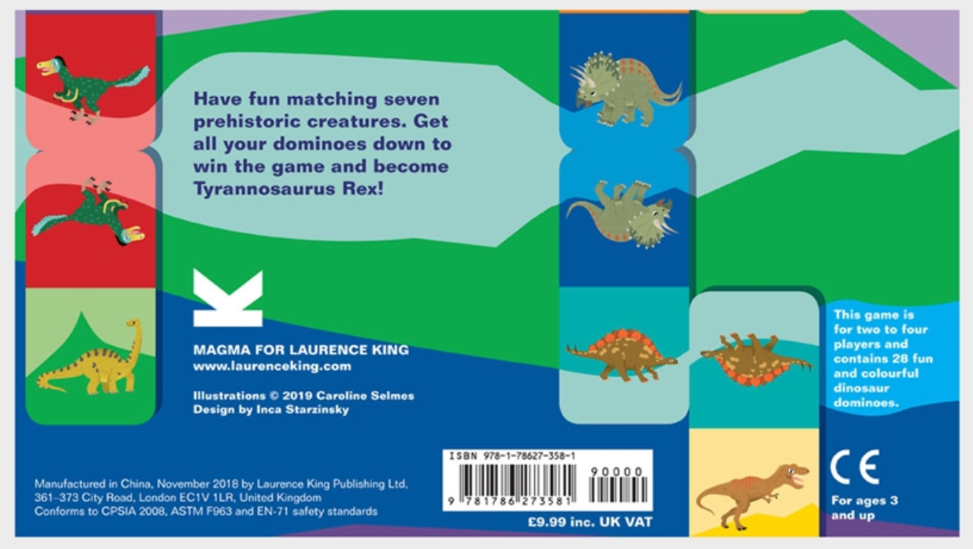This game is for two to four players and contains 28 cute and colourful dino dominoes. Have fun matching seven prehistoric critters. Get your last domino down first to win the game and become T-rex!