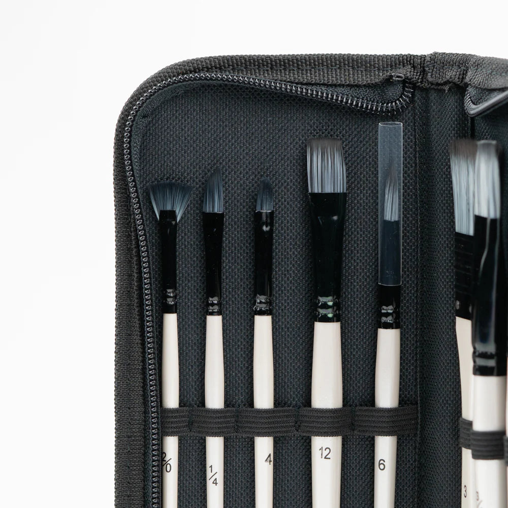 Pack of 10 acrylic paint brushes in handy case.