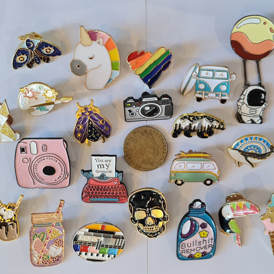 Our range of alloy enamel pins are a fun little gift for a loved one or for yourself.