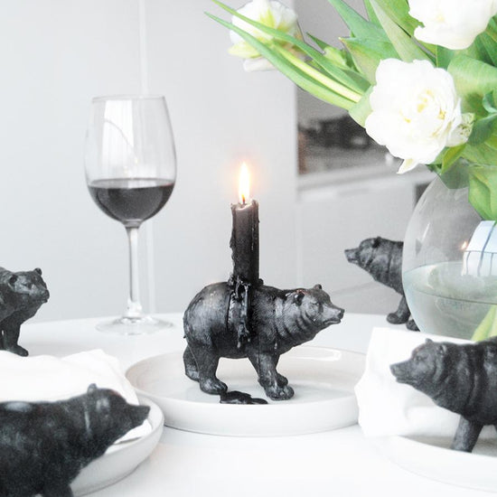 Keep your lighting moody and warm with our resin bear candle holder. Unique faux animal sculptures that create stylish and quirky splashes to your home decor. These small candle holders in bear design have intricately detailed features and colours to suit all home decor colour schemes.