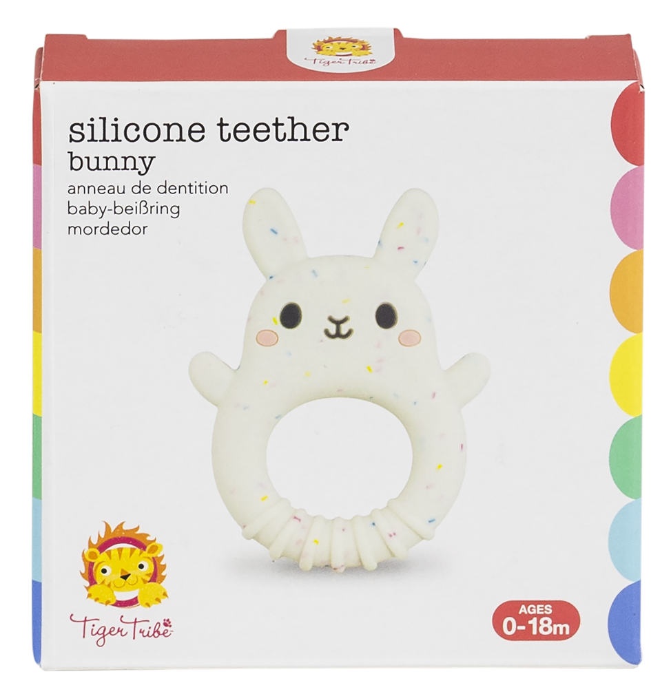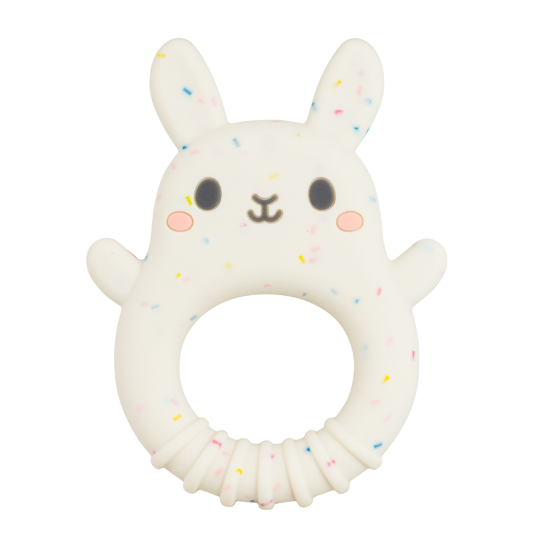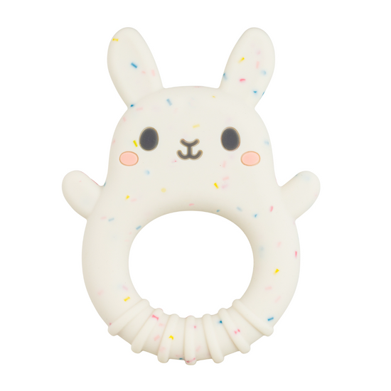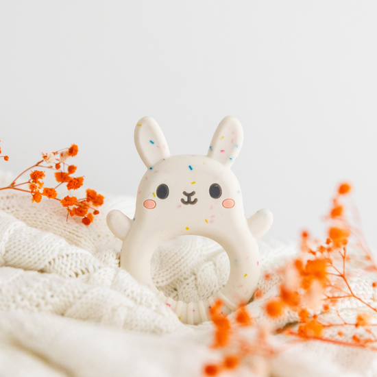 Made of soft, food-grade silicone with a beautiful pastel speckle pattern, sweet Bunny Teether features a range of different textures designed to soothe and comfort teething babes.